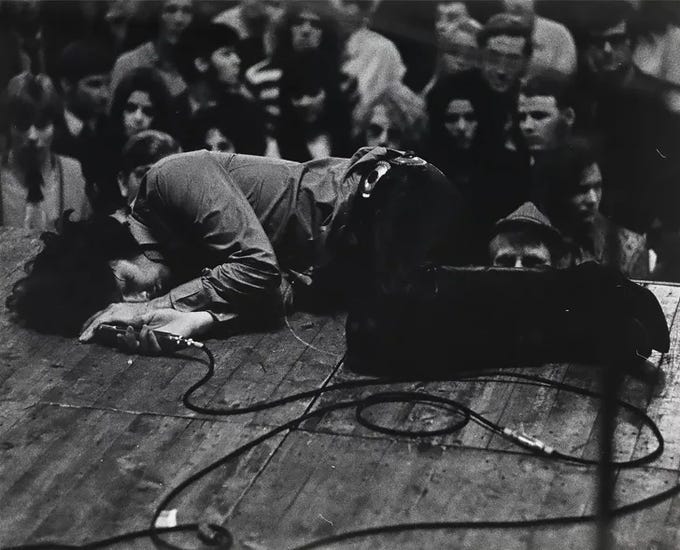 That is the grit we’ve lost. Modern frontmen treat their personas like a digital profile - optimised for engagement, scrubbed of any friction. Morrison, conversely, was all friction. Morrison ultimatively understood that to be a muse, one must first be willing to be a monster - and to be a monster, one must first master the art of charming the entire room, claiming and capturing their attention.